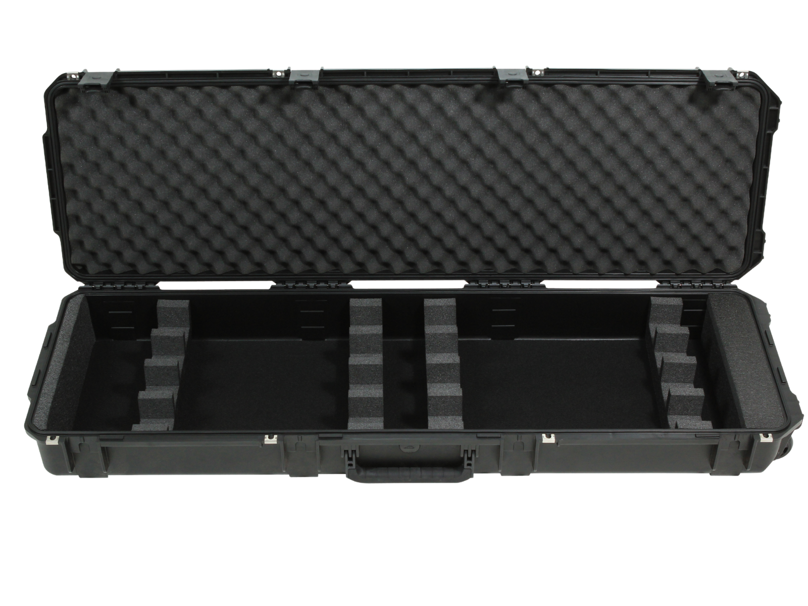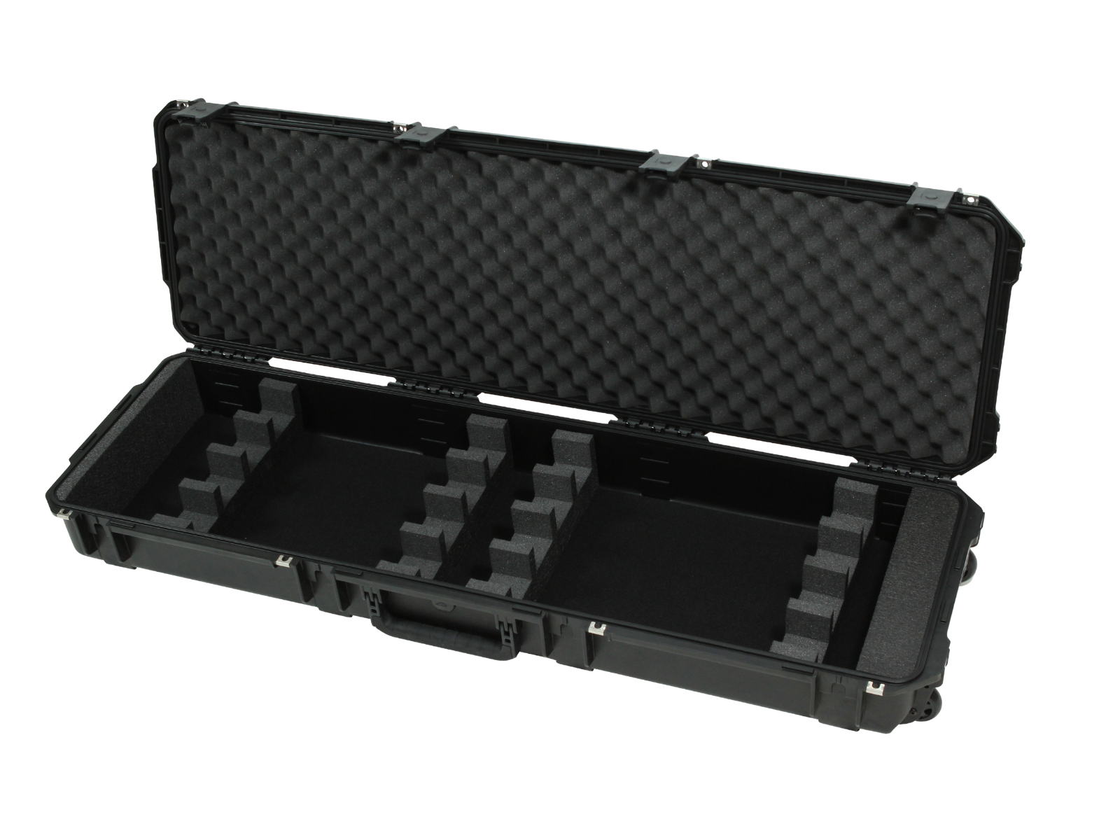 SKB iSeries 3i-5014LBAR Durable case for up to four LED light bars, featuring PE foam blocks, TSA locks, pressure valve, and in-line wheels for transport.