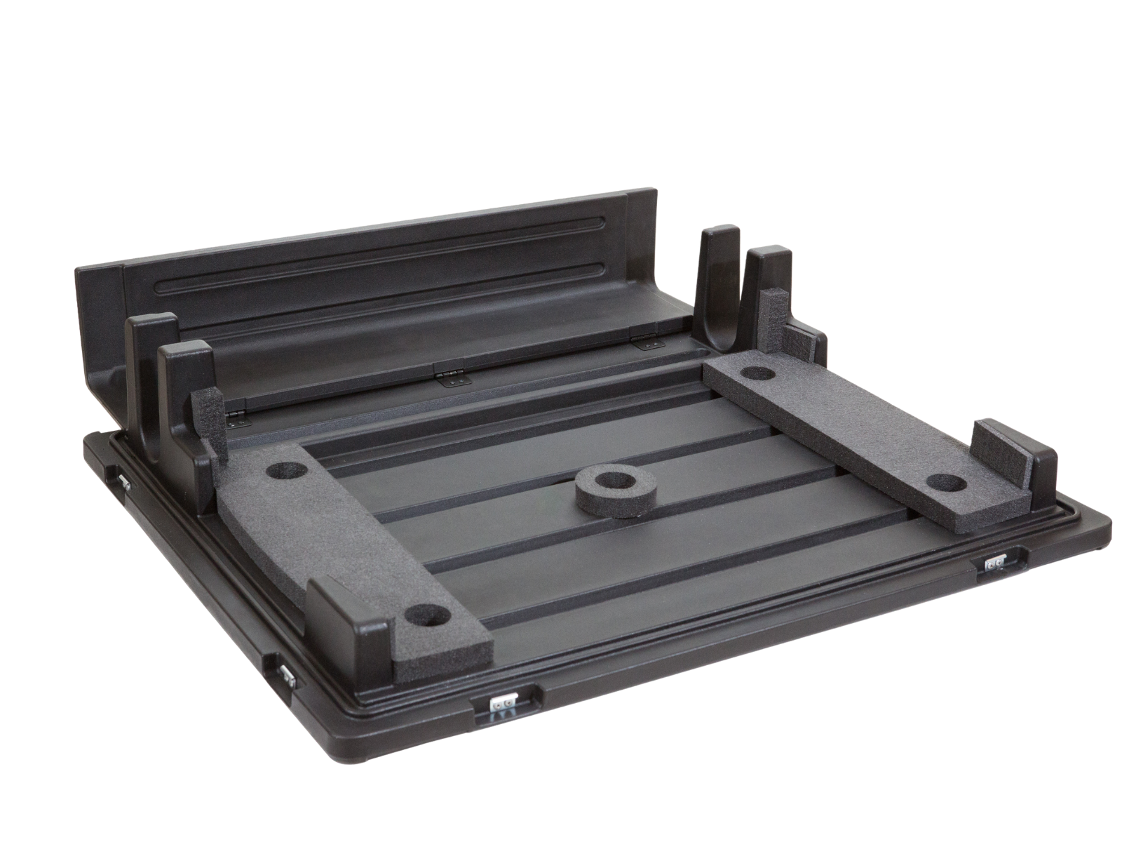 The SKB 1RMX32-DHW is a roto-molded mixer case tailored for the Behringer X32 32-channel mixing console. Made from double-walled Linear Medium Density Polyethylene (LMDP), it ensures exceptional strength and rigidity. A large rubber gasket in the lid offers moisture control, safeguarding your mixer from environmental elements. The case includes a hinged doghouse for streamlined cable and connector management, along with four casters (two locking), six spring-loaded handles, and eight heavy-duty steel latches for secure handling and transport. Its design provides maximum protection while being lighter than comparable road cases, making it an ideal choice for professionals on the move